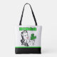 Den här väskan har en vintage skiss över en kvinna som håller pengar. Ord BINGO ligger i stort brev. Grund i påsen är svart med grönten rand.