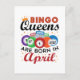 Bingo födelsedagsdesign är perfekt present för kvinnor med April födelsedagar som älskar att spela bingo. Bingo drottning nyhetsdesign är en bra födelsedagspresent för bingo mormor.