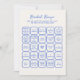Quirky och whimsical möhippa bingo med blått handskrivet teckensnitt och full anpassade. Det nedladdningsbara spelkortet kommer i ett roligt-färg-schema med koboltblått och ekru.