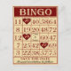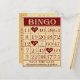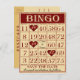 Vintage stil spara datum meddelande med roligt Bingo-tema. Data av händelserna framhävs med hjärta och par namn i mitten på kortet. På baksidan av vykortet meddelas även datum och ställe i förlovningen.