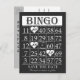 Inled stil spara datum meddelande med ett roligt Bingo-tema. Data av händelserna framhävs med hjärta och par namn i mitten på kortet. På baksidan av vykortet meddelas även datum och ställe i förlovningen.