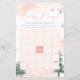 Bingo Baby Shower-spel på vintern med gräs träd och snöflingor.