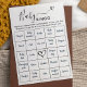 Med ett rent linjer och en tidlös design tillför detta kort ett inslag av modern elegans till firande. Fira i stil och skapa omhuldade minnen med vårt vackert utformade bingo-spelkort, designat för att komplettera vilket babyduschtema som helst. Varje del av mallen är anpassade, från stilar och färg till storlekar. Om du behöver hjälp eller vill ha matchande artiklar, tveka inte att nå ut till mig.
