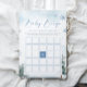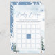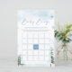Bingo Baby Shower-spel på vintern med gräs träd och snöflingor.