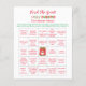 Denna unika, visuella, vackra jul, jättebra, party-bingo-match var skapad med en aning humor och charm. Med en handillustrerad utformning visar omvänt en festlig mönster med tomtens renar, mjuka snöflingor och Julgranar, som alla återges i ett mysigt, ull-liknande struktur. Lägg till det här bingo-spelet för att sprinla lite till party!