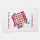 För vinnaren som spelar Bingo eller för dörrpriserna är det här en perfekt till ditt kök. Vit handduk med Red Bingo Card med bollar. Du kan byta kyrkan eller organisationen namn till din.