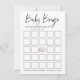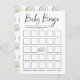 Bingo-spelkort för spädbarnsdusch med "Baby Bingo" överst i ett modernt kalligrafiskript och en blå och brun vattenfärg som mittpunkt för bingostället. Anpassa till mamma för att vara namn och babydusch längs grund. Utformningen koordinerar med vår Cute Watercolor Rainbow baby och barnsamling.