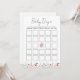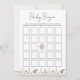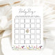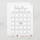 Cute, vildblomsterduschbingo-jaktkort med "Baby Bingo" överst i ett handskrivet skript med en vildblomsbukett som mittpunkt. Vackra vildblommor och lövlinje grund på kortet i nyanser av rosa, gult, lila, blått och grönt på vit bakgrund. Detta jokerbingokort är perfekt för vår och sommarbabyduschar.