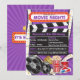 Med retro filmrullar och film och popcorn, läsk, biljetter och 3D-glasögon. Denna inbjudan finns i olika bakgrundsfärger, inklusive rosa, lila och röd.