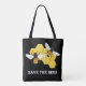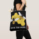 En grafisk illustration av en honungsbin och bikaka av konstnären/designern Charmaine Paulson på en toteväska.