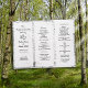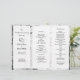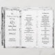 Fågelbarken viks med bröllopsprogram. Tema land eller bröllop utanför dörren, med tre textavsnitt. Skapa ett trefaldigt eller dragspel för ceremonin. Två hjärtan-design på framsidan ovanför parets namn. Rustic stil i svartvitt.