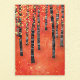 Färgning av en björk eller aspen-skog i fallet. Rödskog, orange och gult, halvskog av abstrakt.