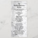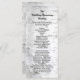 Rustic, långa bröllopsprogram med barkbakgrund. Svartvit tema med text på båda sidor. Perfekt för utomhustemat bröllop, bröllop eller land. Lägg till all ceremoniinformation och brudens sida-lista på framsidan. Inkludera tackmeddelande, i minnet av eller riktningarna/adress i mottagningen till baksidan.