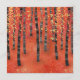 Ett modernt landskapsmålande av en fågelskog eller aspen träd under hösten i riker av rött, orange och gult.