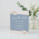 Blåblå inbjudan till Birch wood Dsty Blue Bröllop spara datum. Faux guld gren grafik. Teckensnittshögdagrar i skript med lätt läsning av namn-teckensnitt. Enkel att anpassa efter dina egna behov i bröllop. Utomhus bröllop, bakgård bröllop, dammblått bröllop tema.