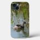 Perfektens telefonfodral för fågelskåp. Foto av minst giftig (vattenlevande fågel) som simmar i en damm. En mycket idyllisk scen för vilken natur som helst älskare.