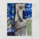 Bird Dino Blue Paint Mixed Media Collage Vykort