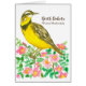 Ett tomt hälsningskort som dekoreras med en western madowlark av ljusa gulter på en vild rärie ro bush illustrerad med bläck och vattenfärg. Inspinerad av den statliga fågeln och statsblomman i North Dakota.