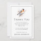 Elegant funeral thank you card featuring a watercolor painting of a little bird perched on a branch, and your custom message surrounded by a thin border.