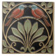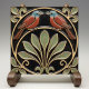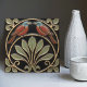 Bird on Flowers Art Deco Nouveau Faux Relief Kakelplatta