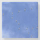 A coaster featuring a photo of a flock of birds in formation. Possibly Canada geese or ducks.
