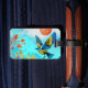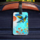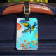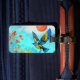 Denna vackra utformning visar en blå och guld-fågel som landar på ett gyllene träd med en vacker himmel av många blå färg och en djärv orange sol.