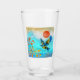 Denna vackra utformning visar en blå och guld-fågel som landar på ett gyllene träd med en vacker himmel av många blå färg och en djärv orange sol.