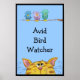 Vare sig en kattälskare, en fågel älskare, en träd älskare eller en utomhusfågel älskare ... finns det något för dig i bilden av en gult tabby katt som tittar upp vid tre färgstarka fåglar som vidrör över en extremitet.