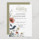 Birthday Celebration Invitation | A unique bird watching birthday party invitation .. for bird lovers … or change the text for any group .. a whimsical little bird sitting on flowers motif - A combination of script calligraphy combined with a minimalist, contemporary style text layout makes it a trending style . The "birthday" calligraphy along with all other text is customizable for color -