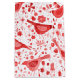 Modern vattenfärgning av röda och vita fåglar och blommor. En söt Scandinavian inspirerade mönster. Originalkonst av Nic Squirrell.