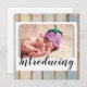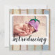 Den nyfödda eleganten för födelseattest i baby skriver ett fototillvalskort. Rustic Wood-bakgrund. Lätt att justera mallen.