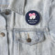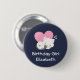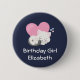 Knappen för födelsedagsflicka med en vacker bild. En vit kattunge med en söt bild på hennes päls. Det går fredligt. Ett stort rosa hjärta bakom henne och några små stjärnor också. Mörk blått bakgrund.