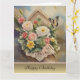 En vacker bukett i ett fågelläge ger önskemål för ett Grattis på födelsedagen. Inuti er hittar ni en vers av firande och önskemål för lycka, kärlek och skratt.