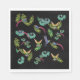 Färgfåglar, små matfåglar, digital konst teckning, som flyger fritt mellan grönt lövs. Snygg mönster för konst och fågel älskare. Anpassningsbarnas bakgrund färg.