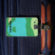 Bagagetagg för en golf älskare, med en teckning av fåglarens öga-utsikt av en golfbana i blått, grönt och sandbeige. Anpassa med ditt namn!