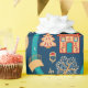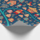 Birds syn på öga. Hus, skog, dvärgar, björnar, rävar, harar, flod. Dekorativt sömlöst mönster på blå bakgrund. Folklore stil.