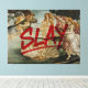 Recontextualizing Botticelli’s emblem of love and rebirth through contemporary street wisdom: SLAY, scrawled in red marker, cuts across the serene scene to reclaim beauty and power. This giclée edition delivers vibrant color and layered meaning, ideal for bold collectors interested in queered art histories.