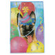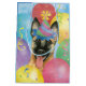 Grattis på födelsedagen hälsning med denna söta design med en söt, party hatt-bärande belgisk marionett Malinois omgiven av färgstarka ballonger, konfekt och strömmare.