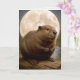 A beaver sits on a log by the river, illuminated by a full moon glowing brightly behind it, with lush foliage surrounding the scene.