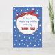 Efter din födelsedag är det dags att avsluta din dag med tackkort. Detta blåkort har vita stjärnor och ett rött band och perfekten säger tack för födelsedagen presenter.