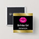 Knappen för födelsedagsflicka med en illustration som visar shock rosa läppar. Fet och pulserande bild. Faux guld övertoning gräns längs överkanten och grund. Ställ in på en svart bakgrund.