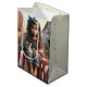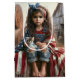 En liten flicka i mörk med kattungar och en amerikansk flagga är sitta på en höbale med kattunge. Födelsedatext kan redigeras.