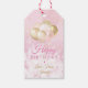 En underbar rosa och glitter-ballonggåva från grattis på födelsedagen. märkre. Den här femininin designen är perfekten att önska någon ett grattis på födelsedagen med sin gåva. Anpassa med ditt eget namn för att göra det enkelt att omsluta presenter. Rosa och guld färgad typografi på en bubbeleffekt med gig bakgrund.