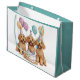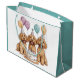 Tur tecknad illustration av Goldendoodle-hund med en födelsedagshatt med en födelsedagskalas och ballonger. Perfekt för djurälskare eller hund.