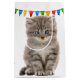 Cute grått kitten på vit bakgrund för födelsedagsfest flaggor. Bakgrunden till färg kan ändras.