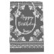 Grått och vita bandanna-designen för födelsedagen. Namn kan redigeras.