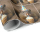 A festive groundhog in a colorful party hat holds a cupcake with a lit candle as it peeks out from its burrow