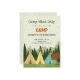 "Birthday invitation with a camping theme. The front features illustrated tents and pine trees, reading 'Camp Vibes Only, Hike on Over to Camp, Joseph's 10th Birthday.' The back is solid green. The overall tone is adventurous and outdoorsy."