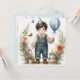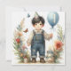 Kortet firar en liten pojkes födelsedag som vänder 1. Den har blommor, kakor och fjärilar. Baksidan har en liten version av frambilden och gott om utrymme för skriva av ett meddelande. AI Bing hjälpte till att skapa kortet.