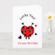 This adorable folded birthday card features a heart-shaped ladybug in red and black, surrounded by sweet hearts on a clean white background. A charming and cheerful design that feels warm, joyful, and full of affection.